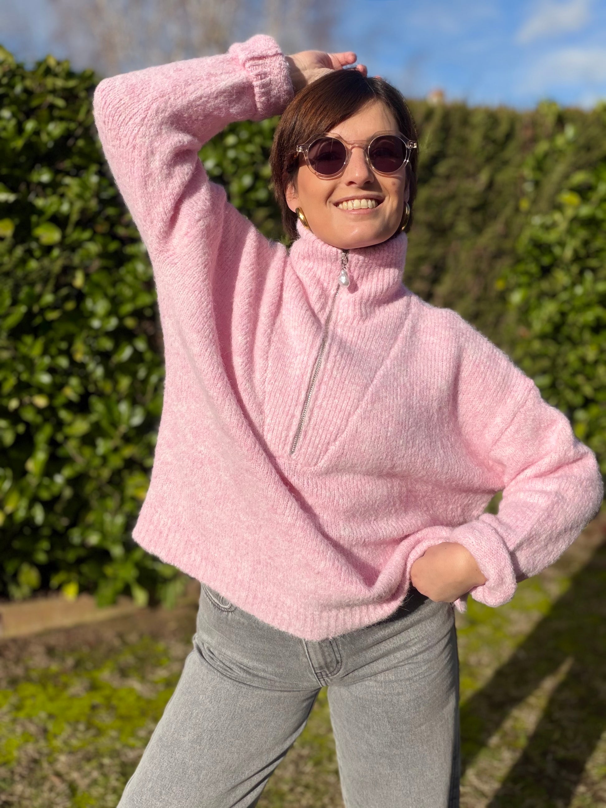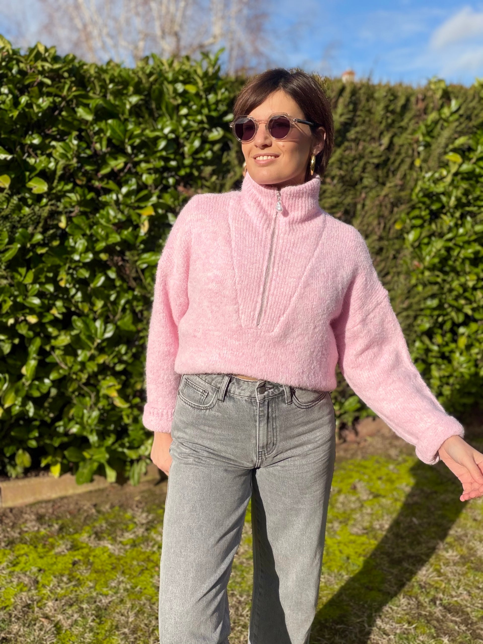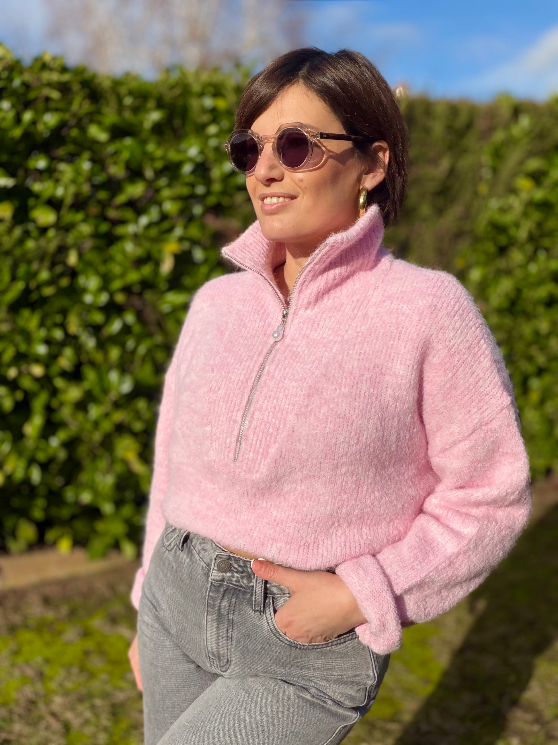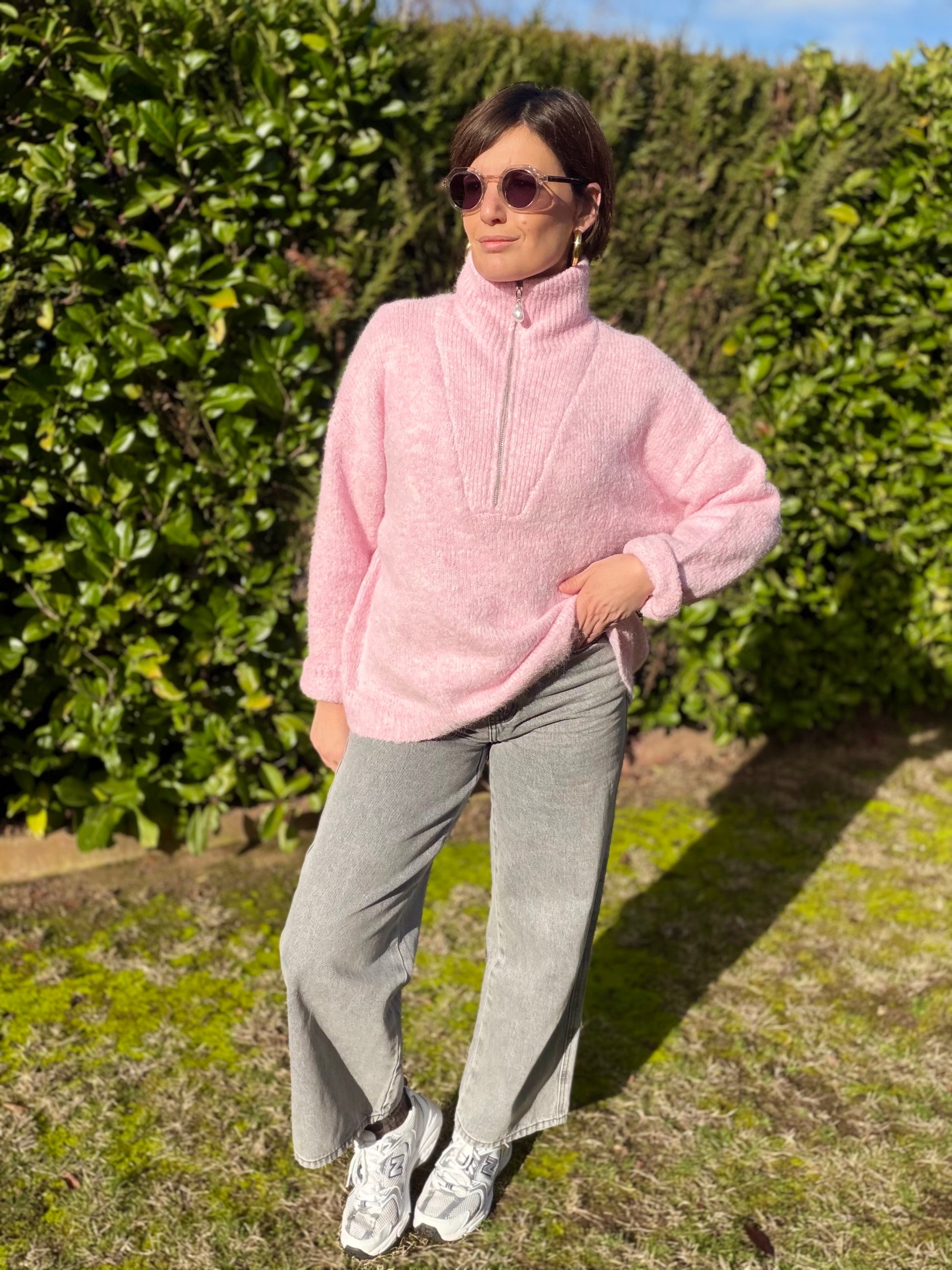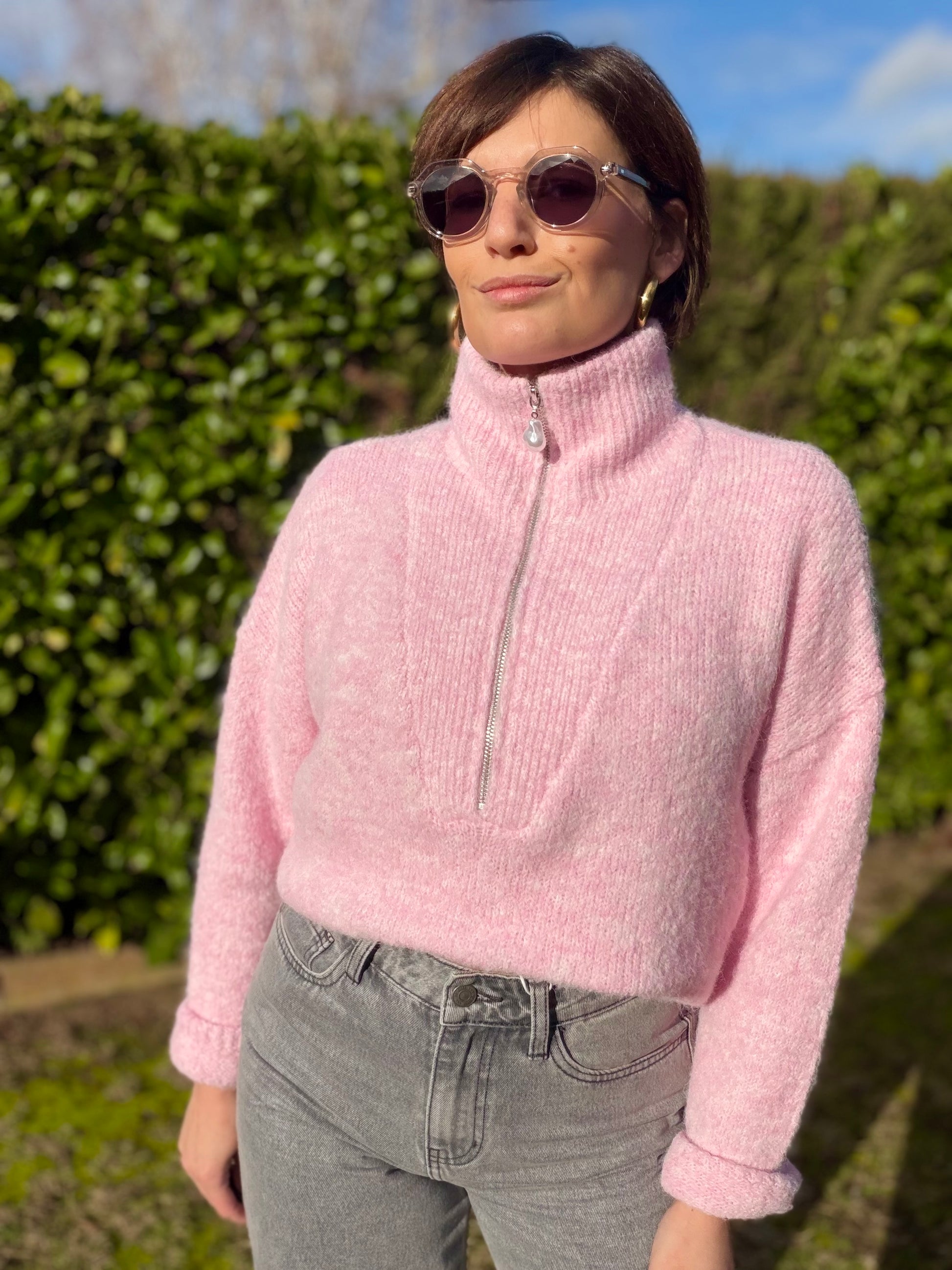 Pull col montant zip ,manches longues , doux.